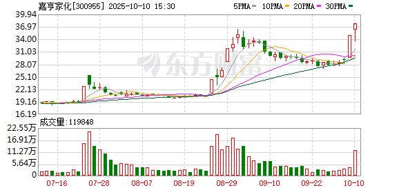 嘉亨家化(300955)发布公告,公司股票在2025年9月30日、2025年10月9日和2025年10月10日连续3个交易日,收盘价格涨幅偏离值累计超过30%。